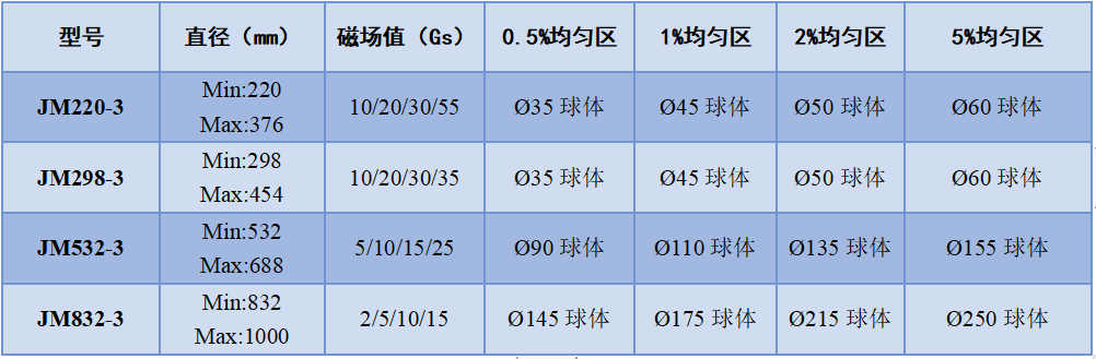 三维线圈,磁场方向X轴、Y轴、Z轴相互正交,每轴zui高磁场强度100Gs,zui小平均直径200mm,均匀区球体Φ25mm,均匀度0.1%,电源功率300-800W。